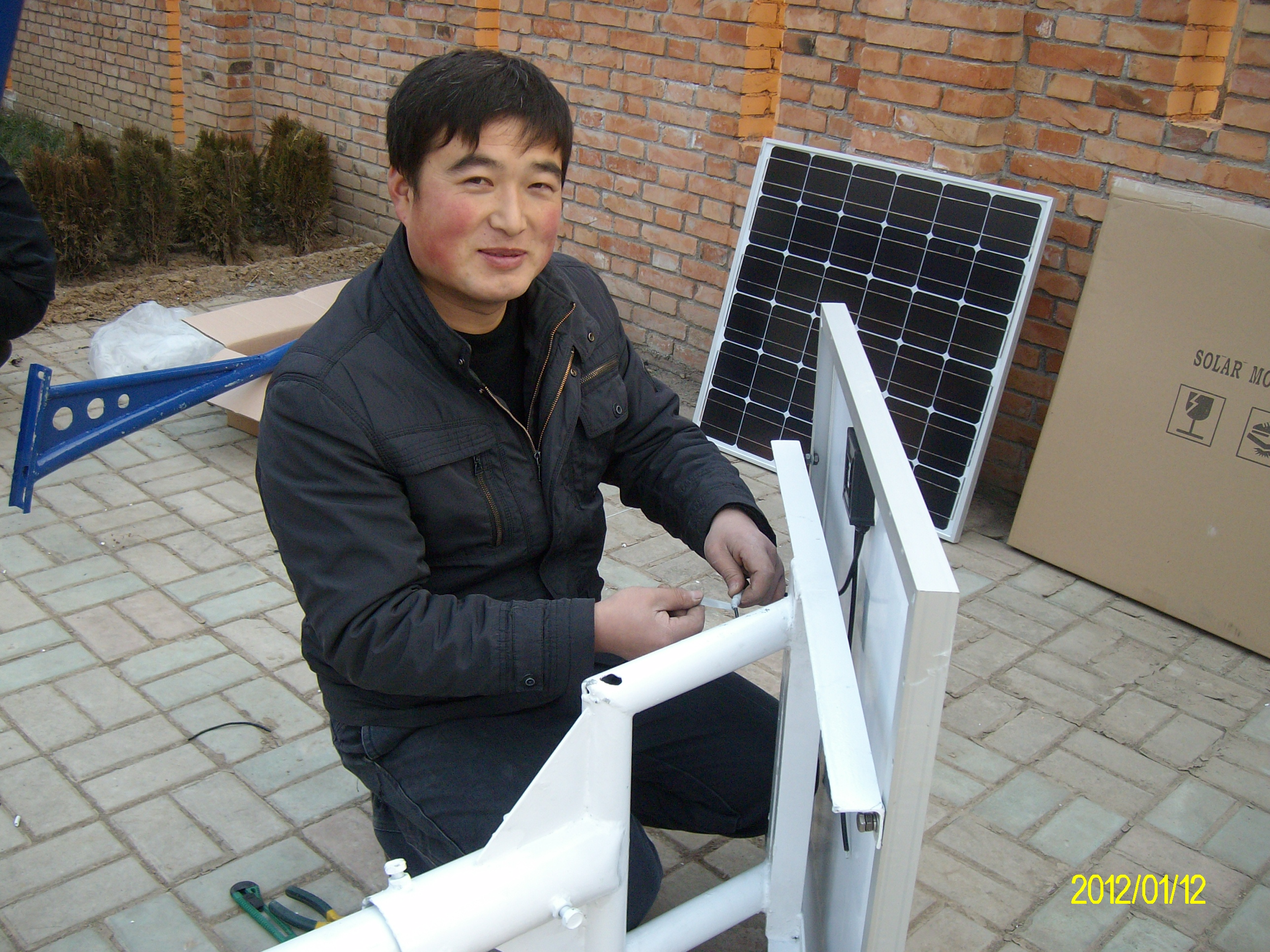 技術(shù)人員組裝路燈