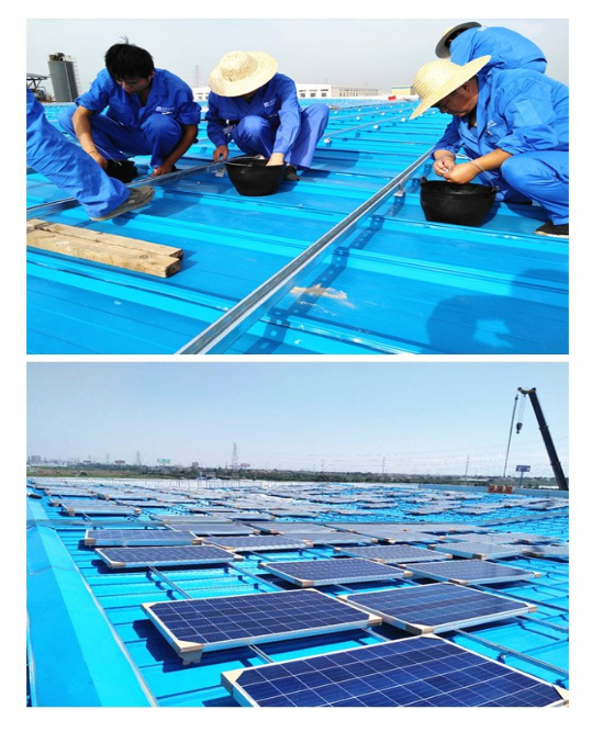 本項(xiàng)目于2017年8月正式開(kāi)工,建于咸陽(yáng)市新興紡織工業(yè)園陜西煤化咸陽(yáng)新型熱能有限公司物料倉(cāng)屋頂,總裝機(jī)容量500千瓦,年發(fā)電量約為50萬(wàn)度。盛夏時(shí)節(jié),烈日炎炎,我們的施工團(tuán)隊(duì)以高昂的工作熱情和認(rèn)真的工作態(tài)度,戰(zhàn)高溫、斗酷暑,頑強(qiáng)拼搏,攻堅(jiān)克難,最終優(yōu)質(zhì)、高效的完成目標(biāo)任務(wù)。