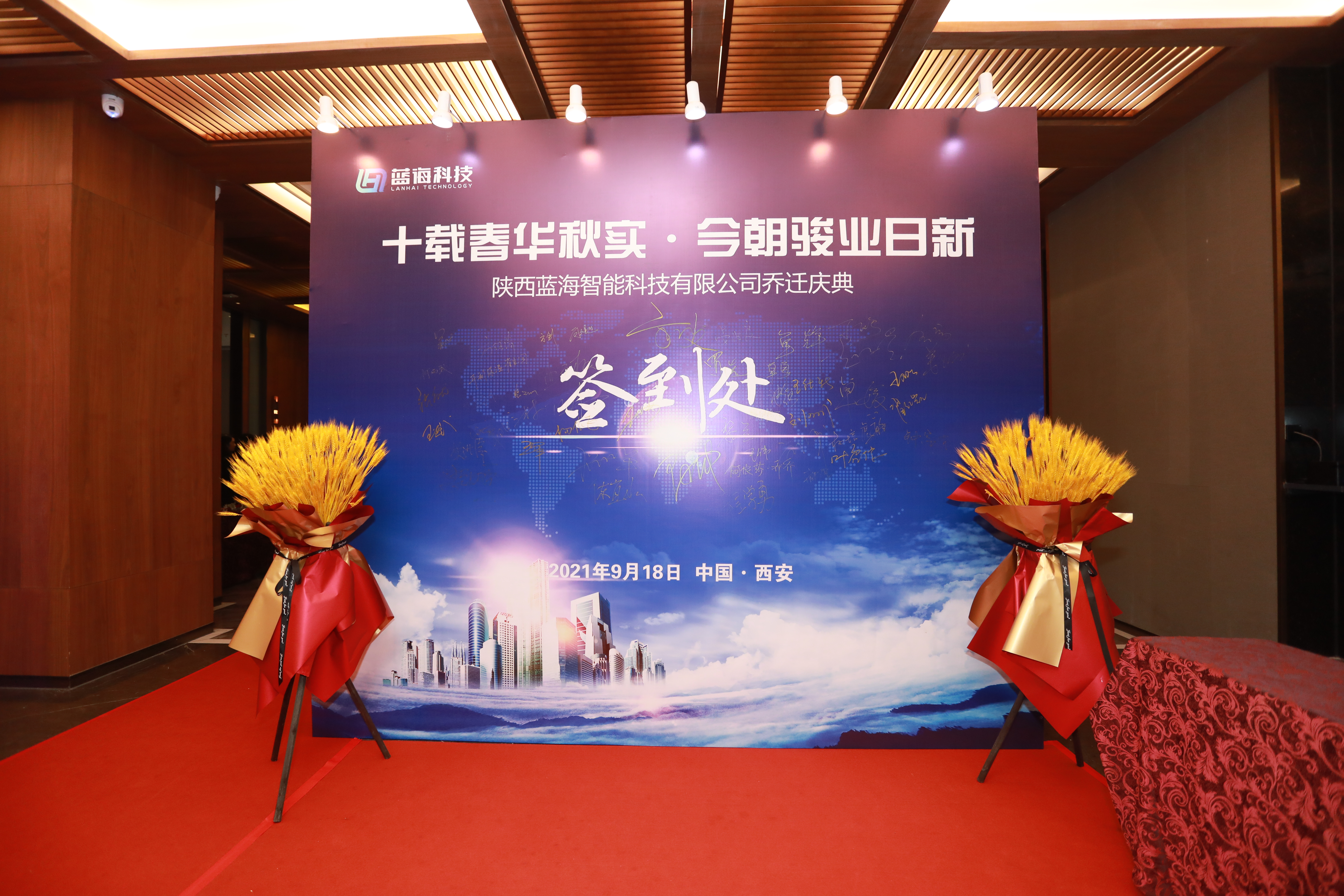 2021年9月18日上午,陜西藍(lán)海智能科技有限公司在西安悅唐軒酒店舉行喬遷儀式,這是陜西藍(lán)海成立10年之際發(fā)展史上又一里程碑,更是企業(yè)領(lǐng)導(dǎo)人帶公司穩(wěn)步發(fā)展不斷前行的重要標(biāo)志。