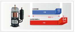 單機(jī)容量擴(kuò)展 壓縮機(jī)搭載尖端技術(shù),功能更 強(qiáng)勁,性能更高效。創(chuàng)新使用 直流變速雙轉(zhuǎn)子壓縮機(jī),轉(zhuǎn)速 范圍更寬廣。 |